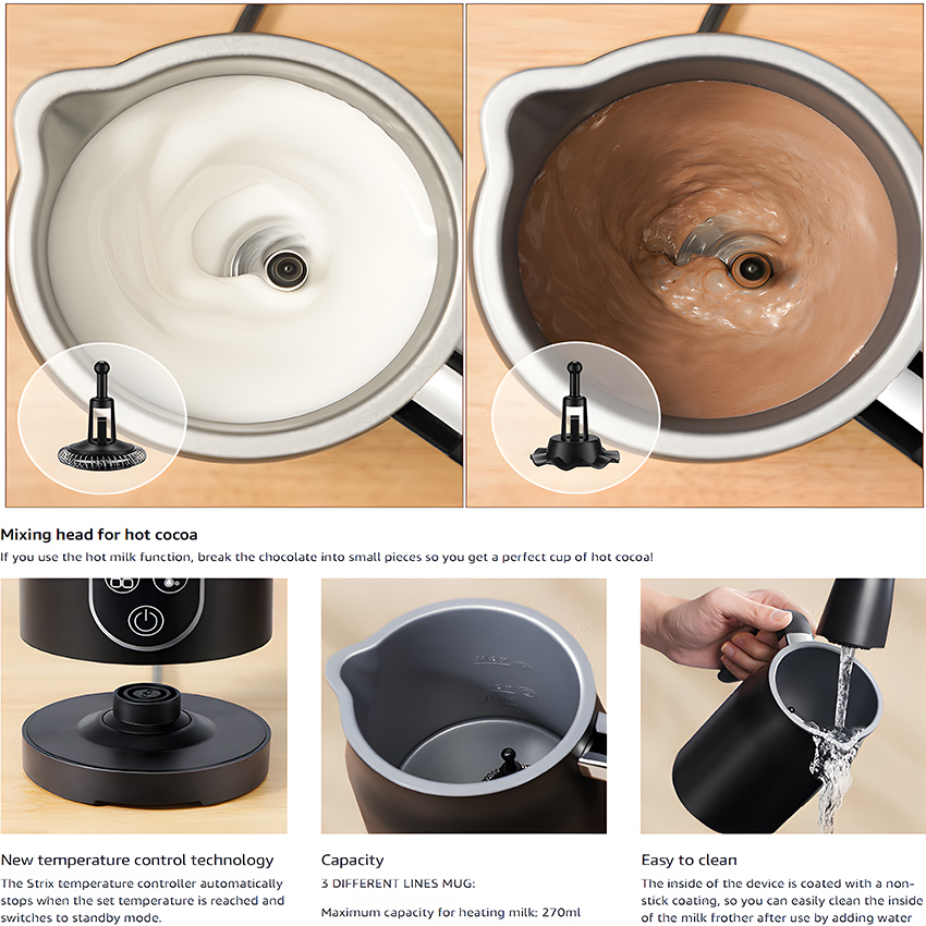 - Dung tích tạo Bọt Sữa: 140ML, Làm Nóng: 270ML Chức năng: 4 trong 1 Tạo bọt sữa dày đặc ấm, Tạo bọt sữa mỏng ấm, Làm ấm sữa, Tạo bọt sữa lạnh