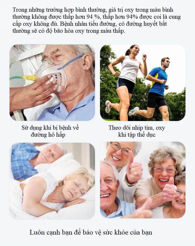 - Thân thiện với người dùng: Sản phẩm sử dụng đơn giản, tiêu thụ điện năng thấp hơn, kích thước nhỏ, trọng lượng nhẹ và dễ mang theo. Thang đo chỉ số nồng độ oxy trong máu (SpO2) tiêu chuẩn