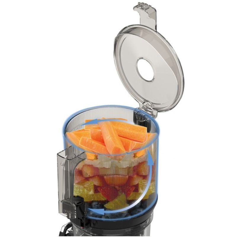 Ép kiệt hơn, giàu Vitamin và nhiều hương vị hơn! Đường kính khoang ép lớn lên đến 130mm, giúp ép nguyên quả dễ dàng mà không cần cắt nhỏ. Tốc độ quay chậm chỉ 40