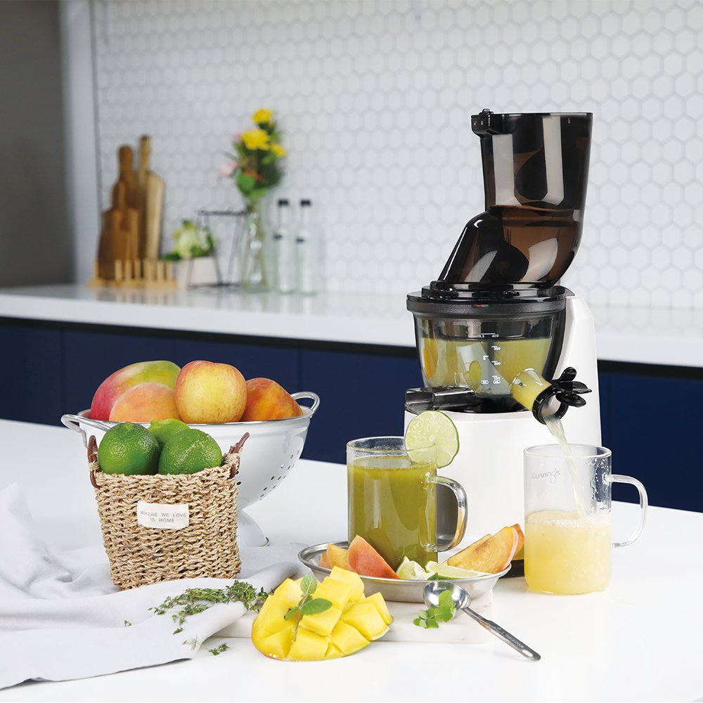 Máy ép trái cây tốc độ chậm hiệu Kuvings Series Hands-Free tự động cắt và ép trái cây cho lượng nước ép nhiều gấp 2 lần, giữ được nhiều Vitamin, Enzym trong rau củ quả gấp
