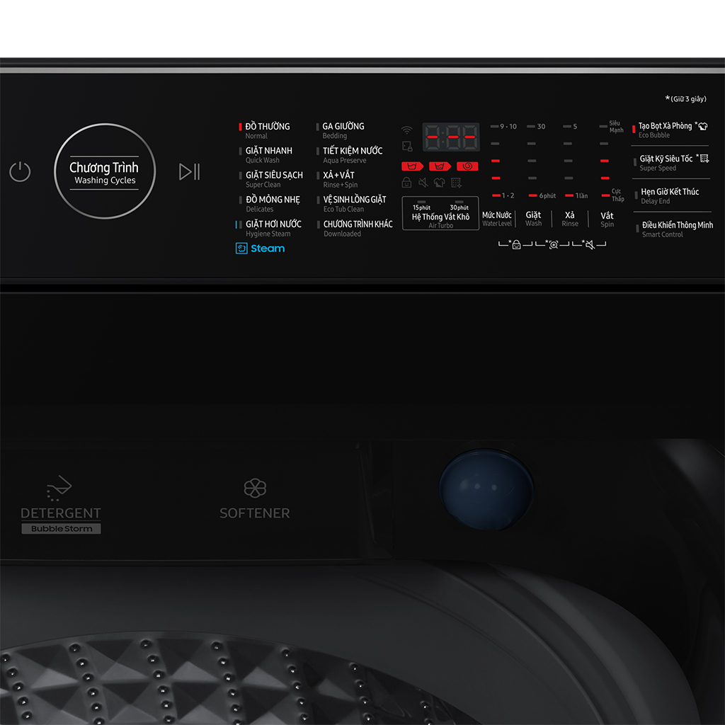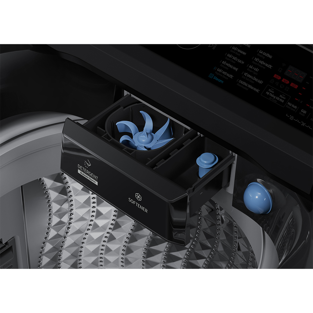 - ĐƯỢC KHUI THÙNG KIỂM TRA sản phẩm trước khi thanh toán/ký nhận Khối Lượng Giặt (kg)12 kg Mức độ tiết kiệm5 star Mâm GiặtSTS Dual Storm Lồng Giặt2nd Diamond Kích Thước Thực (WxHxD)610 x 1059 x 675 mm Khối Lượng Thực40 kg Thông số kỹ thuật Chi tiết Washing Capacity Khối Lượng Giặt (kg)12 kg Thiết kế Màu sắcBlack Caviar DoorBlack Caviar Panel DisplayLED Công suất Mức độ tiết kiệm5 star Feature Eco BubbleYes BubbleStormYes SpeedSprayYes Dual StormYes Hygiene SteamYes Air TurboYes Tự Động Khởi ĐộngYes Child LockYes Delay EndYes Door LockYes Lồng Giặt2nd Diamond Intensive WashYes Magic FilterYes MotorDIT Mâm GiặtSTS Dual Storm Super SpeedYes Spin Speed700 rpm Smart ControlYes Smart CheckYes Soft Close LidYes Water Level10 Levels Cycle Hygiene SteamYes Aqua PreserveYes BeddingYes DelicatesYes Eco Tub CleanYes Downloaded CycleTowels, Jeans, Clean Wash, Soak, Spin Only, Stain Wash(Steam), Colors, Deep Softener NormalYes Option ListEcobubble, Intensive Wash, SuperSpeed, Power Tub Clean, Delay End, Smart Control Quick WashYes Rinse + SpinYes Super CleanYes Đặc điểm kỹ thuật Kích Thước Thực (WxHxD)610 x 1059 x 675 mm Khối Lượng Thực40 kg Tổng kích thước (WxHxD)660 x 1127 x 740 mm Tổng khối lượng44 kg Voltage/Frequency220V/50Hz Smart WiFi EmbeddedYes App Connectivity SmartThings App SupportYes