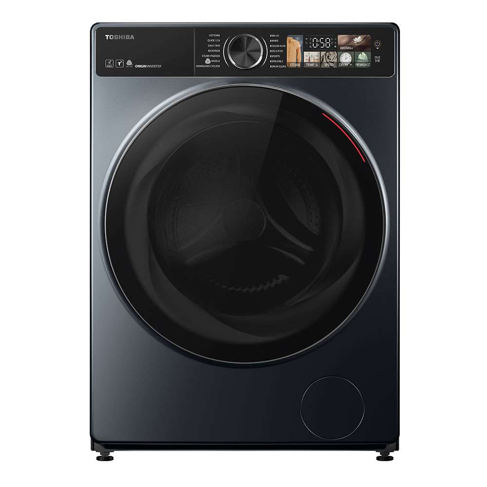 - Máy giặt sấy Toshiba Inverter TWD-T25BZU115MWV(MG) thuộc dòng máy giặt lồng ngang, sở hữu gam màu xám đậm nên dễ dàng phối hợp với các nội thất khác bên trong khu vực giặt giũ của gia đình bạn.