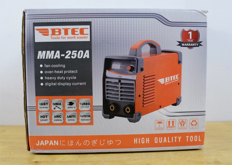 Máy hàn BTEC MMA 250A làm việc hiệu quả với que hàn từ 3.2mm - 4mm