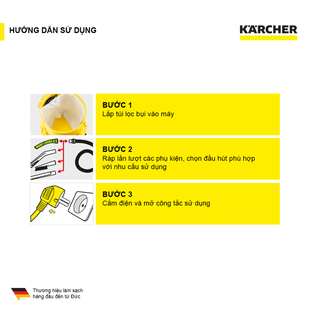 Hiện nay Kärcher Online Shop đang đẩy mạnh phát triển về các dòng sản phẩm máy hút bụi khô, máy hút bụi khô và ướt, máy hút bụi cầm tay, máy hút bụi có lực hút mạnh, công suất lớn, máy hút bụi dùng bộ lọc HEPA...Đối với dòng sản phẩm máy hút bụi Kärcher hướng tới đầu tiên đó là bảo vệ sức khỏe, các thiết bị làm sạch hiệu quả mà không dùng hóa chất, vệ sinh khử trùng, tẩy rửa, đánh bay các bụi bẩn cứng đầu, làm sạch toàn diện ngôi nhà của bạn mà vẫn đảm bảo tiết kiệm thời gian, điện năng đến mức tối ưu nhất có thể.