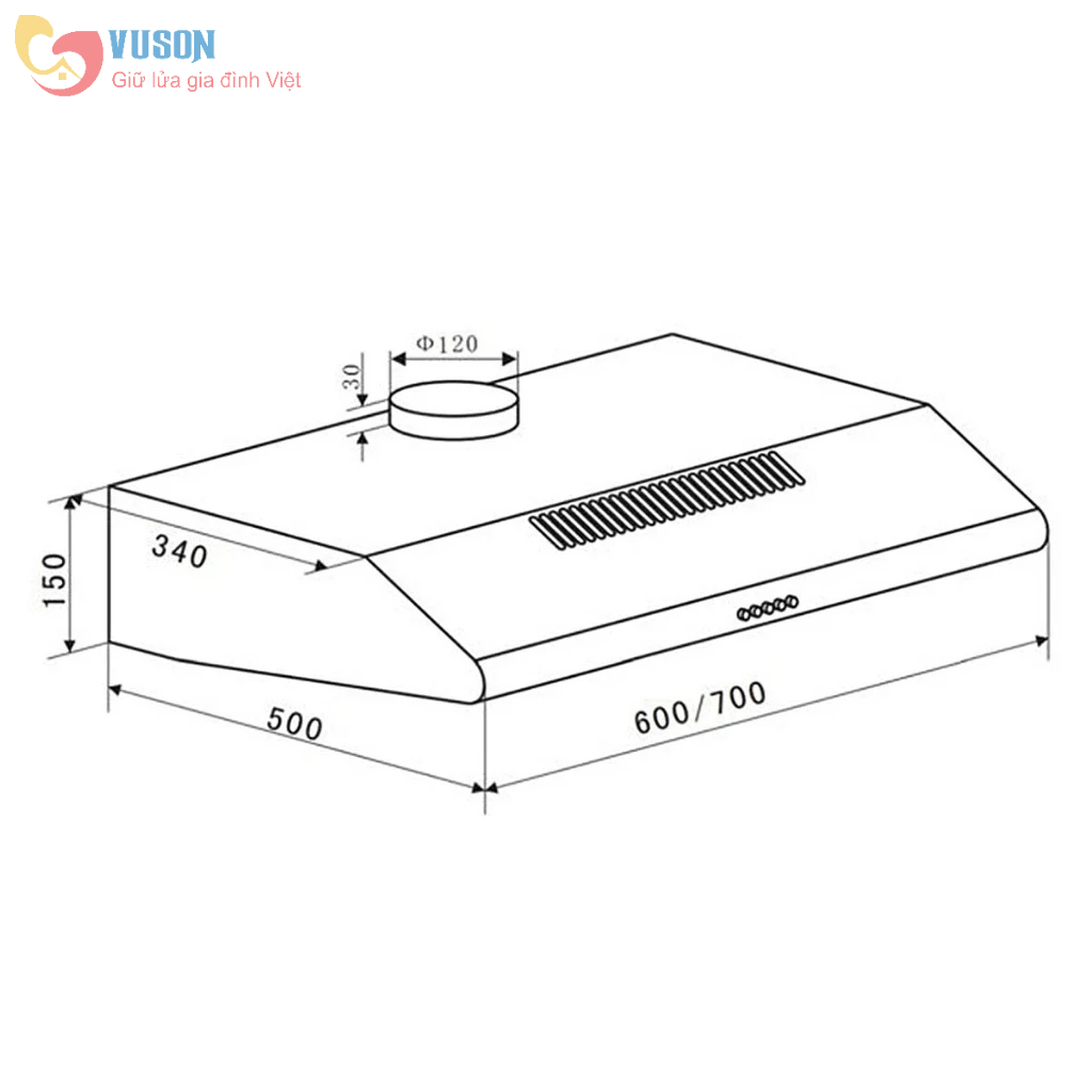 • Kích thước sản phẩm 700R x 505S x 150C mm