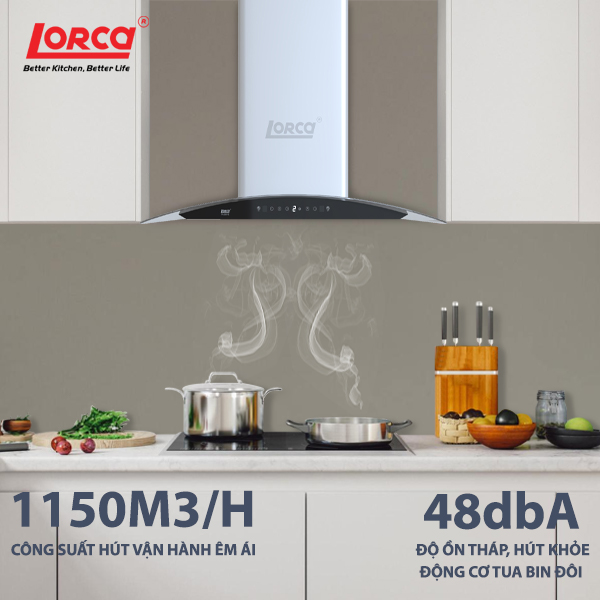 ✨Máy Hút Mùi Kính Cong LORCA TA 2001E - Hàng Chính Hãng Cao Cấp, Bền Bỉ, Êm Ái, Sức Hút Lớn