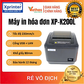 Máy in hóa đơn nhiệt XPRINTER XP-K200L Công nghệ in nhiệt , Cắt giấy tự động Tốc độ 200 mm/s , Khổ giấy: 80 mm Hỗ trợ Tiếng Việt Kết nối:USB+ LAN Tuổi thọ đầu