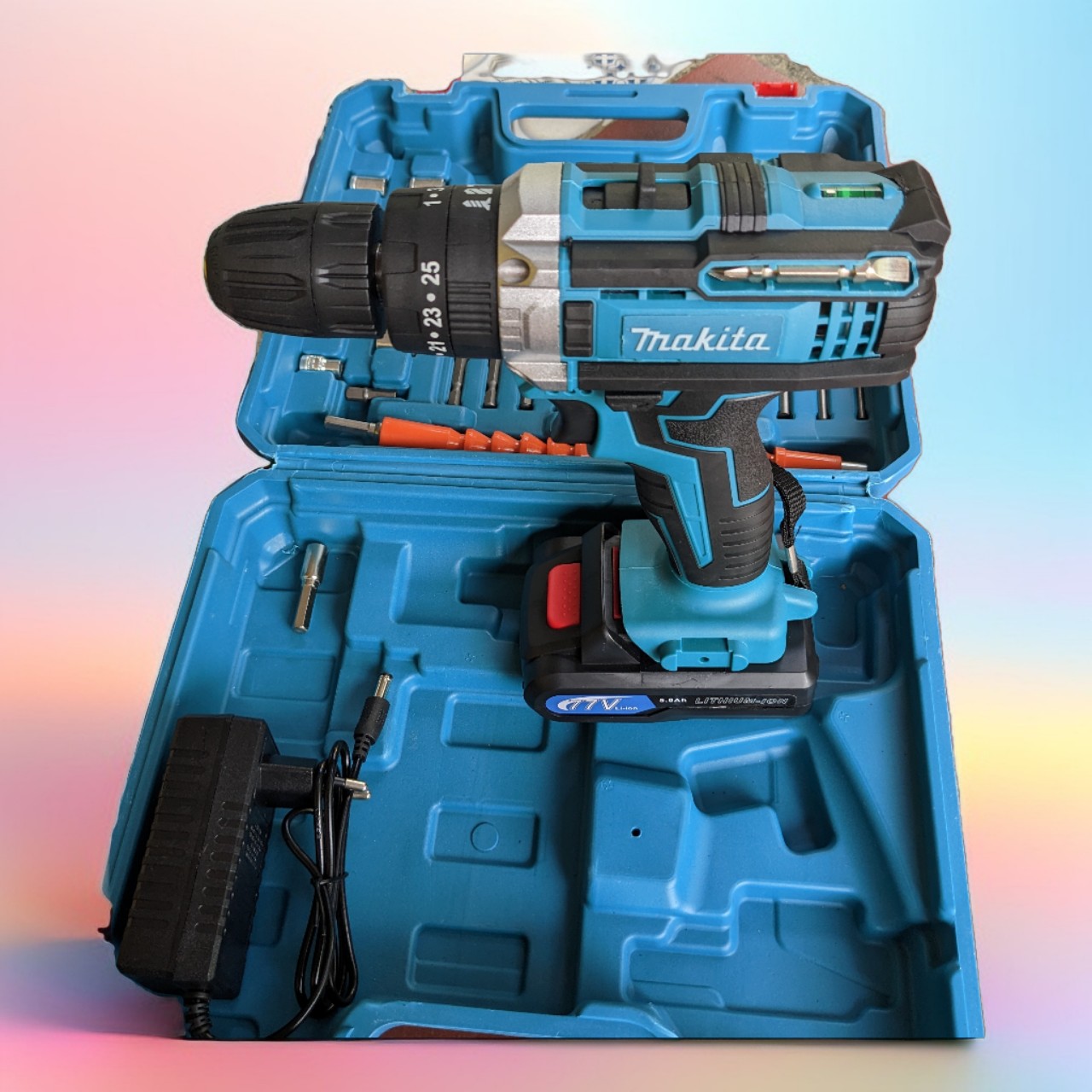 - Tặng kèm 1 bộ phụ kiện ốc vít 24 chi tiết. may khoan pin
