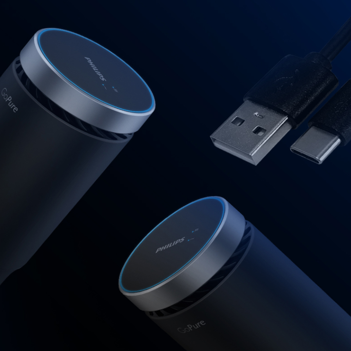 Máy khử mùi, lọc không khí dạng cốc trên xe ô tô cao cấp Philips GP5601 công suất 5,5W tích hợp 5 công nghệ tiên tiến bảo vệ không khí trong xe Philips là tên