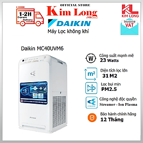 ✨Máy lọc không khí Daikin MC40UVM6-7 - Diện tích 30m2, ion Plasma, Lọc bụi mịn PM 2.5, khử mùi - Hàng chính hãng