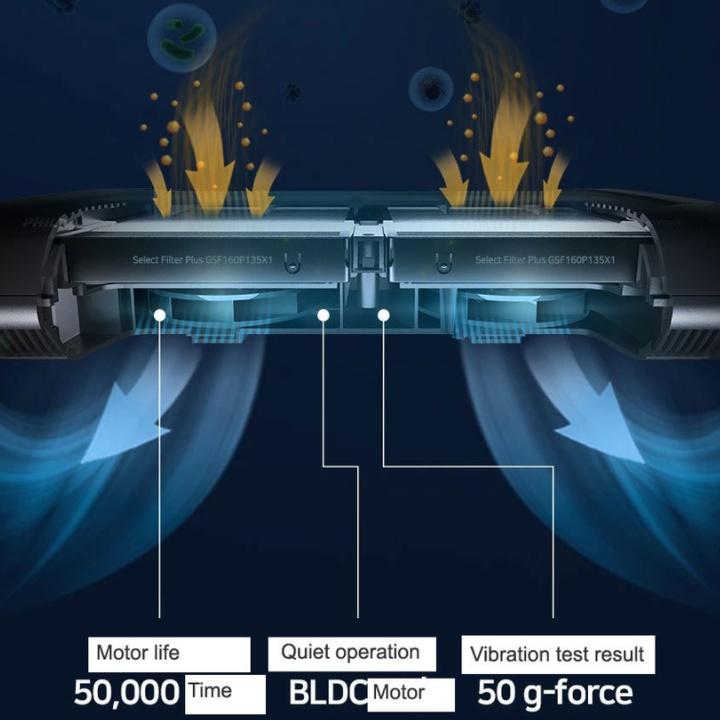 • Với Tỷ lệ lọc không khí sạch (CADR) là 60m3 / giờ cho PM2.5, máy sẽ lọc sạch 50% lượng khí thải của một chiếc sedan hoặc SUV tiêu chuẩn trong 2 phút. Bộ lọc mạnh mẽ này cũng loại bỏ khói thuốc lá, bụi và các hạt bụi siêu mịn PM1 xuống 0,01µm