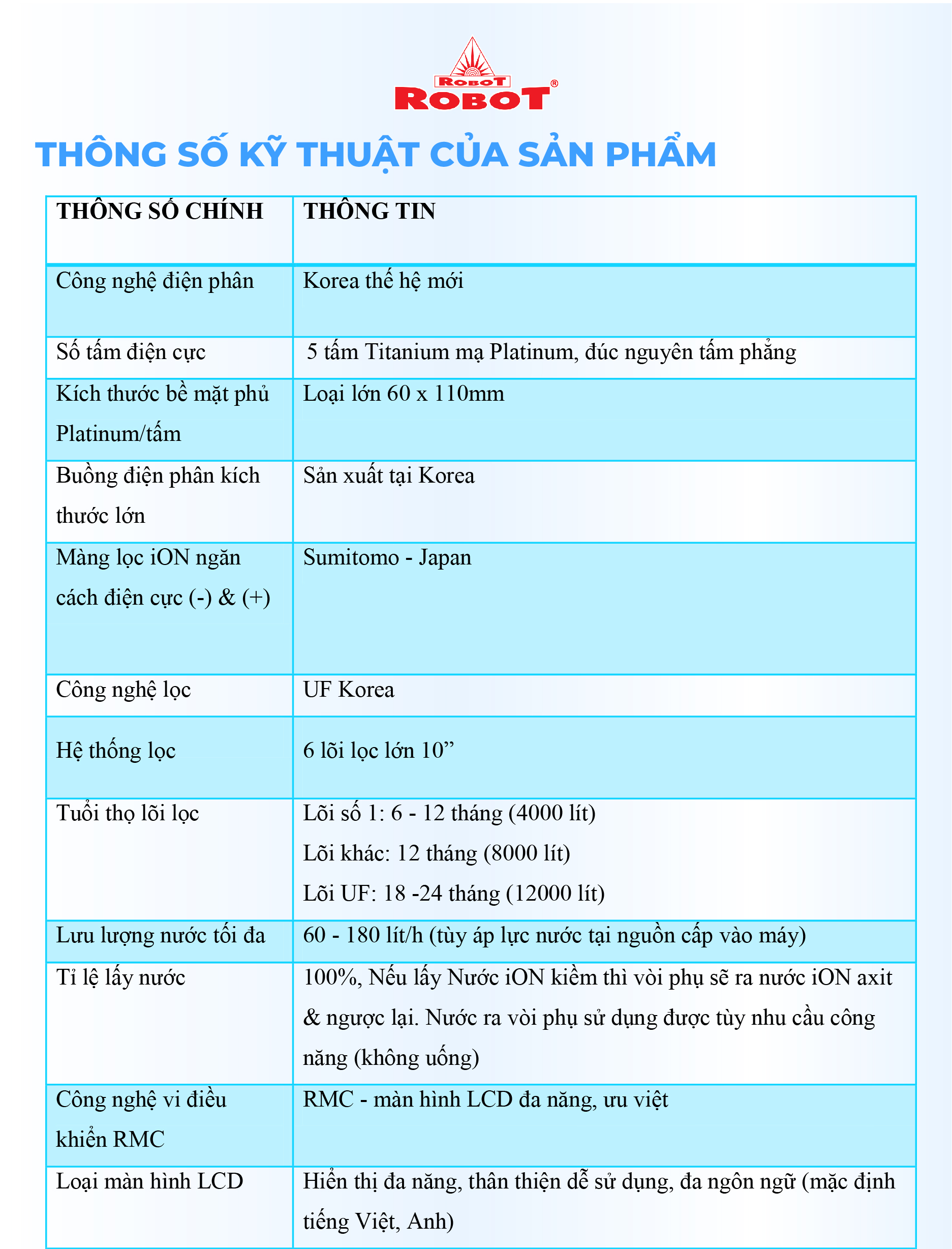 Với mong muốn nhiều gia đình Việt có thể sử dụng nước điện giải iON kiềm với chi phí hợp lý để bảo vệ sức khỏe, sắc đẹp & nâng cao chất lượng cuộc sống, ROBOT mang đến sản phẩm “Chất lượng Quốc tế - Giá thành Việt Nam”, phù hợp với mức sống của nhiều người. Tiết kiệm cho người tiêu dùng đến hơn một nửa chí phí so với máy nhập khẩu chỉ từ 30 – 50%, nhưng sở hữu nhiều ưu điểm, tính năng vượt trội, chất lượng cao.