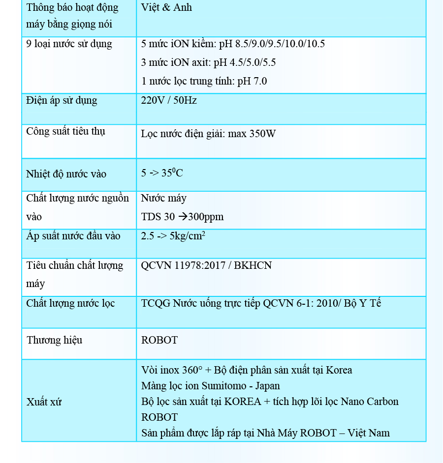 - Với mong muốn nhiều gia đình Việt có thể sử dụng nước điện giải iON kiềm với chi phí hợp lý để bảo vệ sức khỏe, sắc đẹp & nâng cao chất lượng cuộc sống, ROBOT mang đến sản phẩm “Chất lượng Quốc tế - Giá thành Việt Nam”, phù hợp với mức sống của nhiều người. Tiết kiệm cho người tiêu dùng đến hơn một nửa chí phí so với máy nhập khẩu chỉ từ 30 – 50%, nhưng sở hữu nhiều ưu điểm, tính năng vượt trội, chất lượng cao.