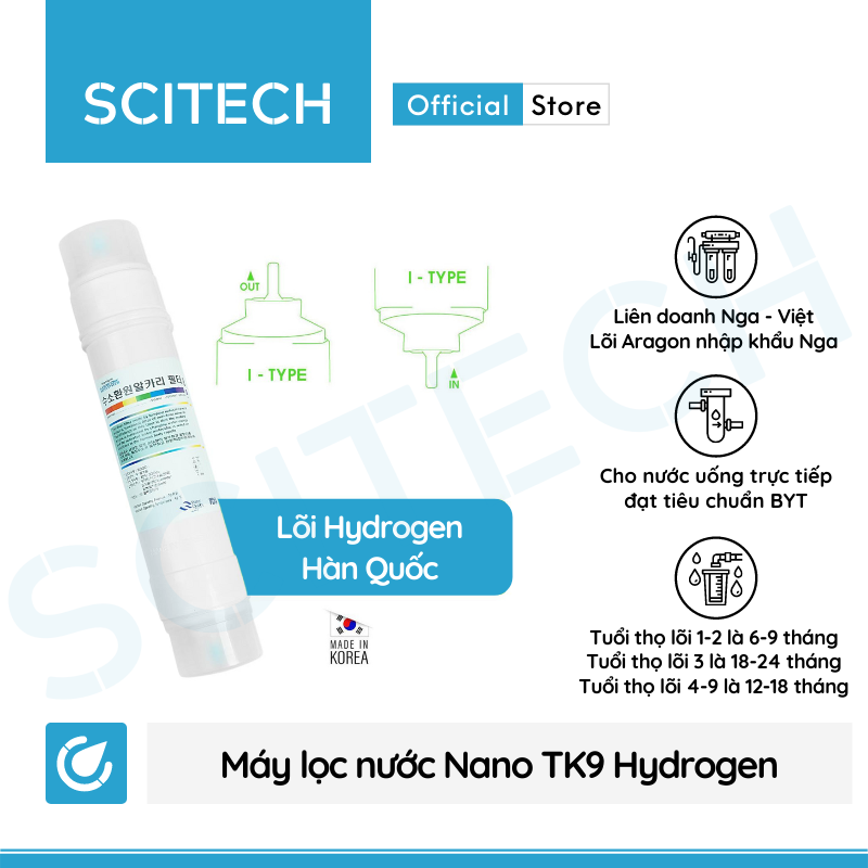 ✨Máy lọc nước Nano TK9 Hydrogen by Scitech (Không dùng điện, không nước thải, tích hợp công nghệ tạo nước ion kiềm) - Hàng chính hãng
