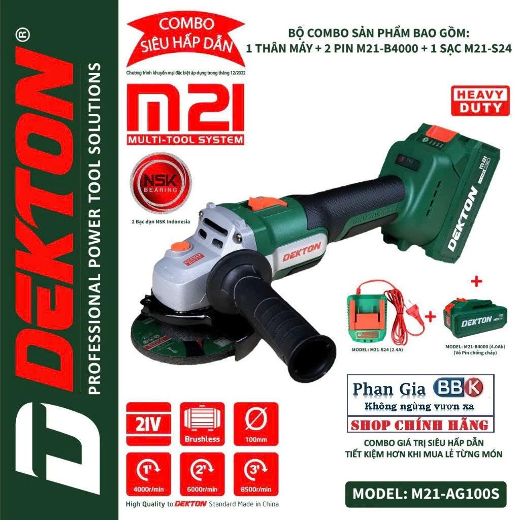 🔴MẪU MỚI DEKTON🔥Combo GIÁ RẺ máy mài pin Dekton M21 AG100pro có chức năng an toàn kickback control