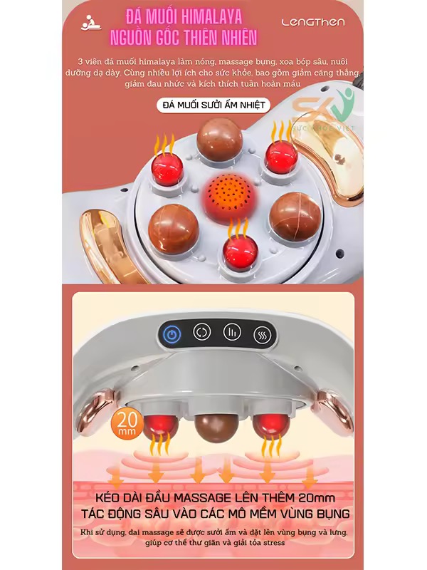 Sản phẩm được sử dụng ở rất nhiều vị trí, vùng trên cơ thể như: bụng, lưng, vai, chân,... giúp hỗ trợ giảm đau mỏi, massage sâu kèm massage nhiệt mang lại cảm giác thoải mái, dễ chịu cho người dùng.