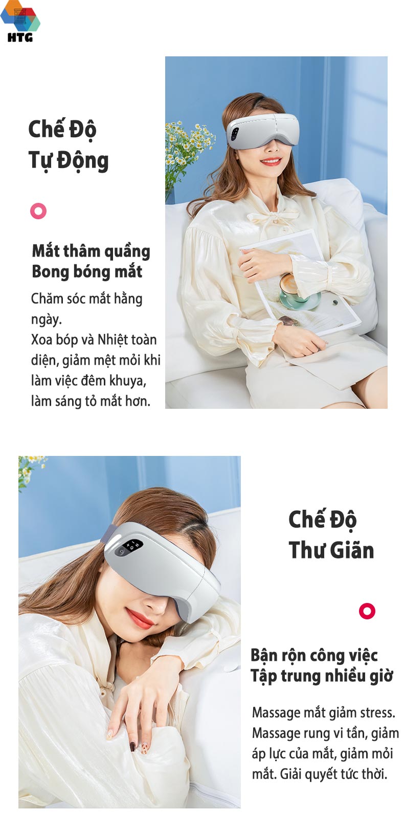 Máy massage mắt HTG MM05 tích hợp điều khiển từ xa, 5 in 1 phiên bản nâng cấp, 2 cấp độ xoa bóp