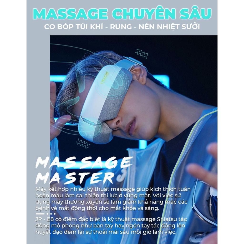 Sử dụng công nghệ áp suất co bóp túi khí và chức năng rung đa tần, JP-E8 mang đến trải nghiệm massage hiệu quả và thoải mái, giúp giảm căng thẳng và mệt mỏi mắt.