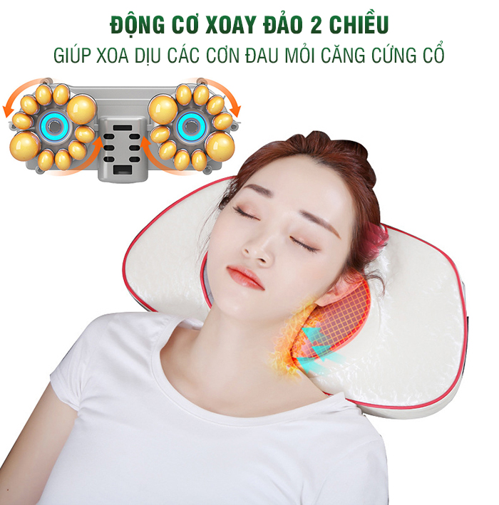 Chất liệu gối cao cấp với độ đàn hồi cao, bề mặt thoáng khí, đem đến cảm giác thoải mái, thoáng mát khi sử dụng. Động cơ hoạt động êm ái, bền bỉ giúp bạn có những giây phút thư giãn tuyệt vời