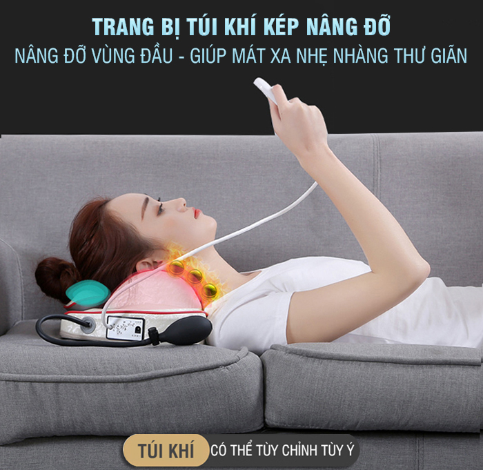 Túi khí nâng đỡ đầu, tạo cảm giác dễ chịu khi massage