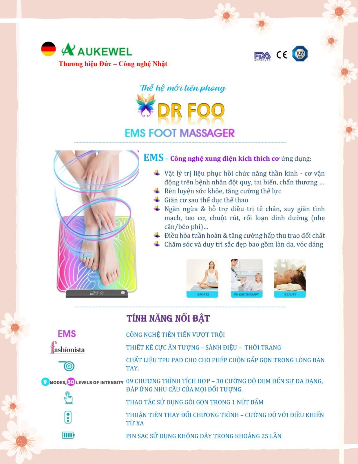 ✨MÁY MASSAGE XUNG ĐIỆN TRỊ LIỆU CHÂN AUKEWEL DR FOO TUẦN HOÀN MÁU