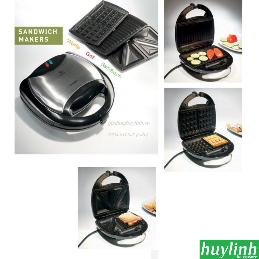 Máy nướng 3 trong 1 Máy làm bánh 3 trong 1 Tiross TS513 với 3 loại vỉ nướng đi kèm, bạn có thể làm các loại bánh khác nhau như bánh sandwich, bánh waffle, bánh