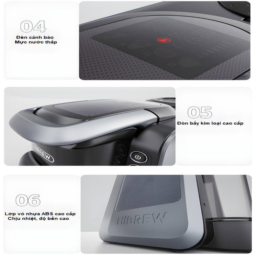 - Máy pha cà phê 4 trong 1 HiBREW H6 là dòng máy pha cà phê bán tự động có khả năng pha chế thành nhiều loại cà phê thơm ngon khác nhau như Cafe Espresso, Viên Nén Nespresso, Nescafe Dolcegusto, Kcup Ưu điểm nổi bật - Điều chỉnh thời gian ủ cà phê trước khi chiết xuất