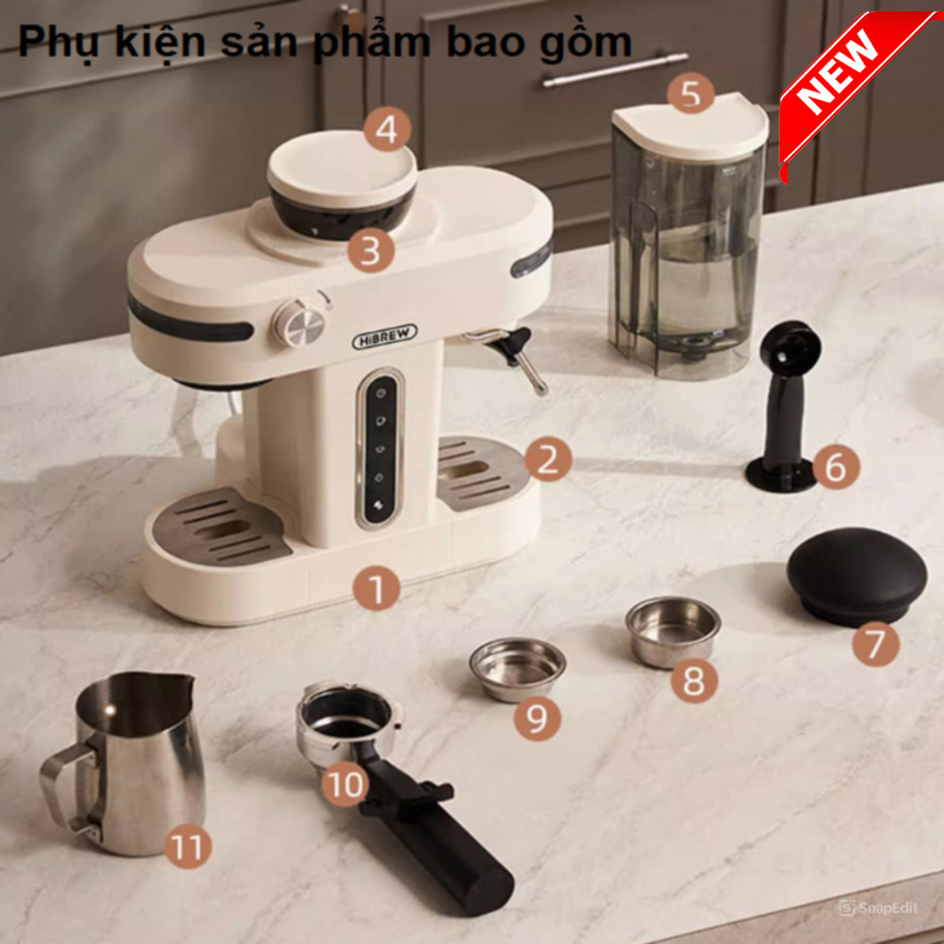 ✨Máy pha cà phê bán tự động kiêm xay cà phê 15 chế độ Espresso, Cappuccino, Latte thương hiệu Mỹ cao cấp HiBREW H14 - Hàng Nhập Khẩu