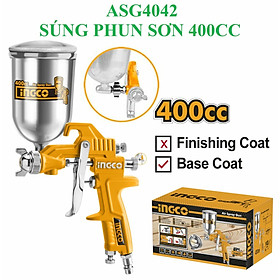 ✨Máy phun sơn INGCO ASG4042 - dụng cụ phun sơn đầu phun tiêu chuẩn 1.5mm, áp suất 3.0-4.0 bar, thể tích bình nhôm 400cc [XSAFE]
