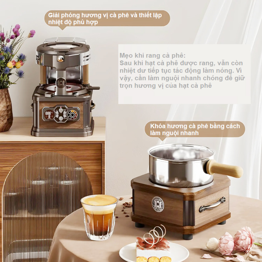 - Máy rang cà phê không khí cỡ nhỏ, công suất rang là từ 120-200g - Rất thích hợp cho cà phê hàng ngày của bạn, tiết kiệm thời gian và tiền bạc, đảm bảo hương vị tươi ngon cà phê Máy rang cà phê thiết kế chuyên nghiệp