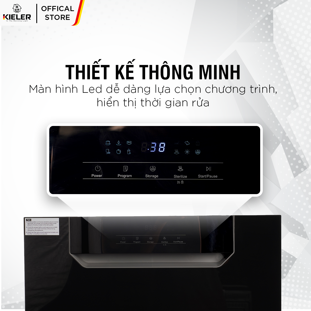 - Tên sản phẩm: Máy rửa bát đĩa KIELER KL-D235 công nghệ sục khí Ozone kết hợp tia UV, diệt khuẩn tới 99% gồm 2 ngăn chứa và 1 ngăn giỏ
