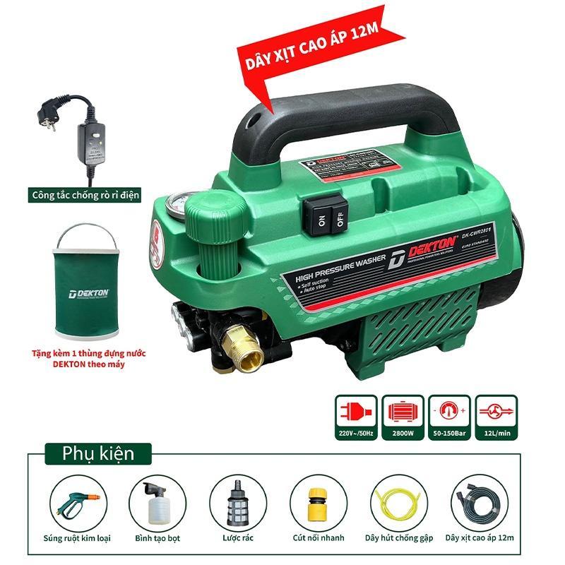 Tính Linh Hoạt và Hiệu Suất Ưu Việt Với công suất mạnh mẽ lên đến 2950W và áp lực cao lên đến 180 Bar, máy xịt rửa xe cao áp Dekton DK-CWR2951 đảm bảo sức