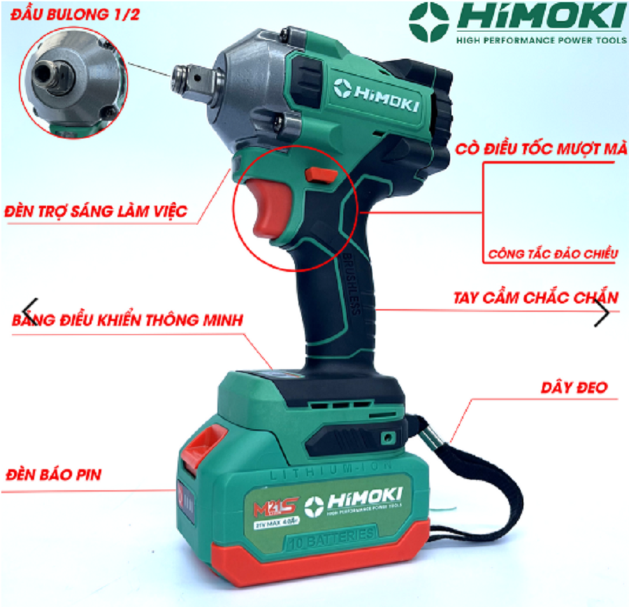 Máy Siết Bulong Pin 21V BHIMOKI 6092B Lực Siết 380Nm Không Chổi Than - HÀNG CHÍNH HÃGMáy Siết Bulong Pin 21V HIMOKI 6092B Lực Siết 380Nm Không Chổi Than - HÀNG CAO CẤP