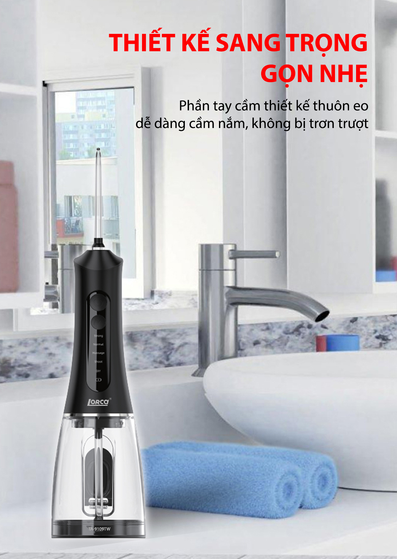 ✨Máy Tăm Nước Cầm Tay Chính Hãng Lorca TA 9109WT Vệ Sinh Răng Miệng, Bộ 5 Đầu Tăm, 5 Chế Độ Sử Dụng