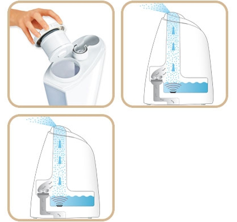 Nước được đưa vào không khí dưới dạng hơi, không nóng, không mùi, đảm bảo vệ sinh.