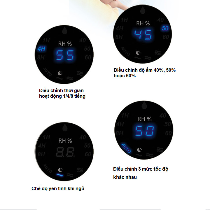 - Những hạt nước với kích cỡ nano nhờ công nghệ xông hơi NanoCloud sẽ giúp giảm đi 99% vi khuẩn trong phòng. -️ Không khí ẩm được phân bổ 360 độ đồng đều và khắp căn phòng. -️ Máy làm ẩm của Philips cho phép bạn lựa chọn độ ẩm từ 40, 50 và 60% cho sự thoải mái tối đa. -️ Chế độ tự động sử dụng cảm biến số để liên tục theo dõi độ ẩm. Nó điều chỉnh việc tạo độ ẩm lên và xuống khi cần thiết, đảm bảo độ ẩm luôn ở chế độ đã được chọn trước. - Đèn báo màu đỏ cho bạn biết bồn chứa nước cần được làm đầy. -️ Khi bồn chứa nước cạn, máy sẽ tự động tắt. -️ Chức năng hẹn giờ: 1/4/8 tiếng. Khi kết thúc thời gian hẹn giờ máy sẽ tự động tắt. -️ Chế độ ngủ ban đêm đảm bảo cho bạn không bị làm phiền bởi tiếng ồn của máy. Máy sẽ hoạt động với độ ồn tối thiểu, tất cả các đèn báo đều tắt ngoại trừ đèn báo tốc độ. -️ Có 3 chế độ lựa chọn tốc độ làm ẩm: thấp, bình thường và nhanh.