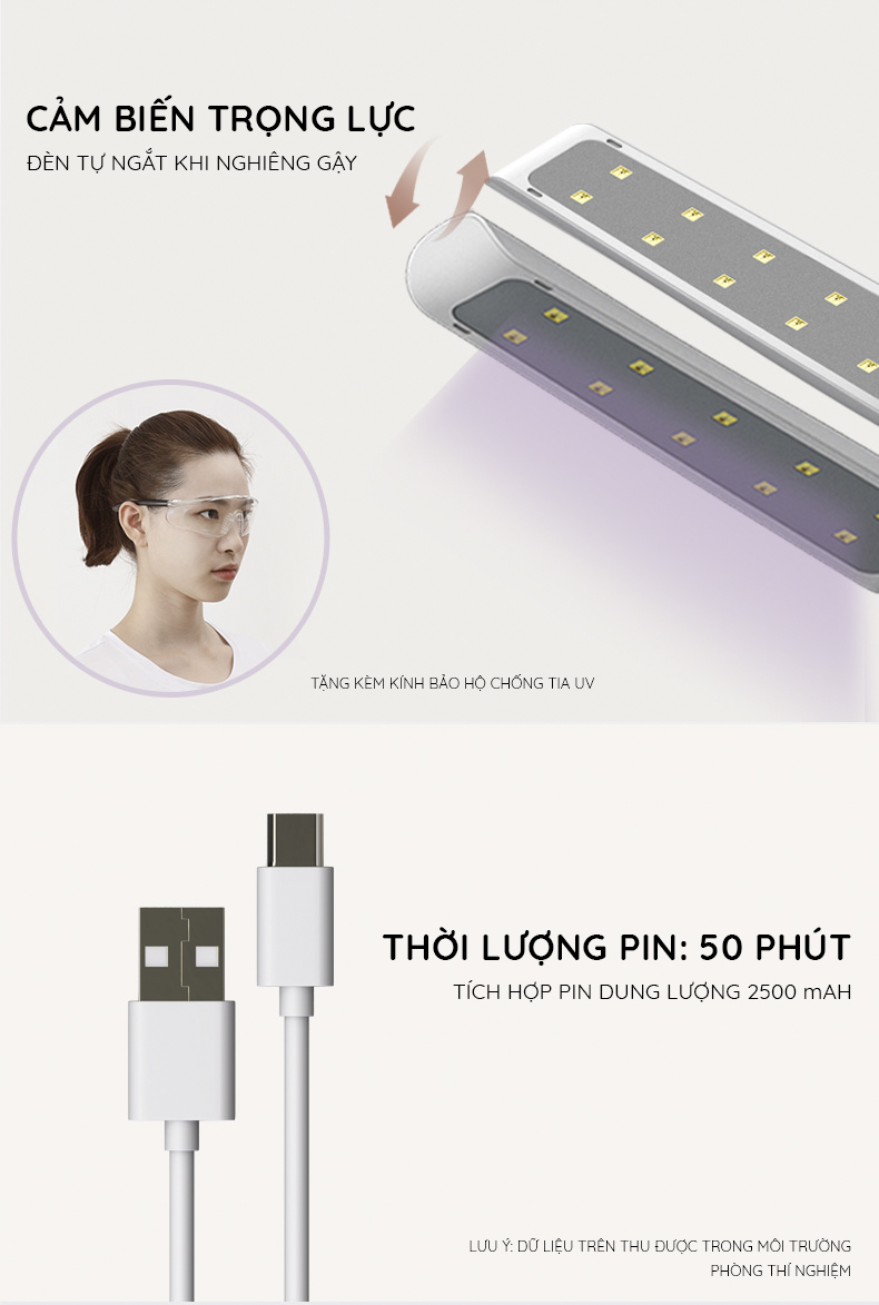 Sản phẩm được làm từ chất liệu nhựa chắc chắn, chống va đập mạnh và chế độ khóa an toàn. Tránh tia cực tìm tiếp xúc với da, cực kì an toàn khi sử dụng, đặc biệt là đối với trẻ nhỏ. Cây khử trùng được khuyến khích dùng với kính bảo hộ nhằm bảo vệ mắt khỏi tia cực tím.