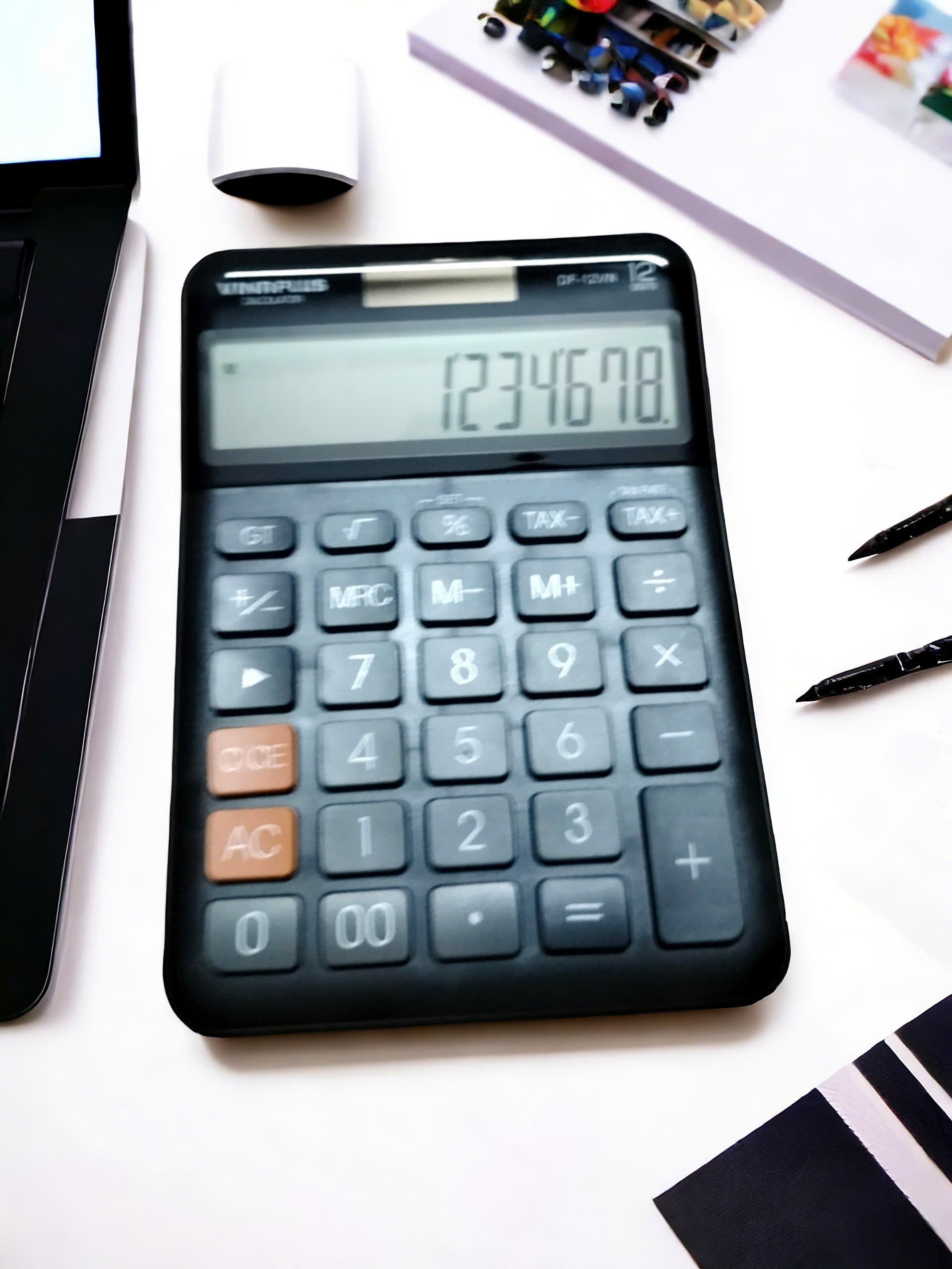 Màu sắc : xanh lá, hồng, vàng chanh, cam Đặc điểm : - Loại để bàn mini - 12 chữ số - Tính thuế - Các biểu tượng lệnh hàm - Màn hình cực lớn