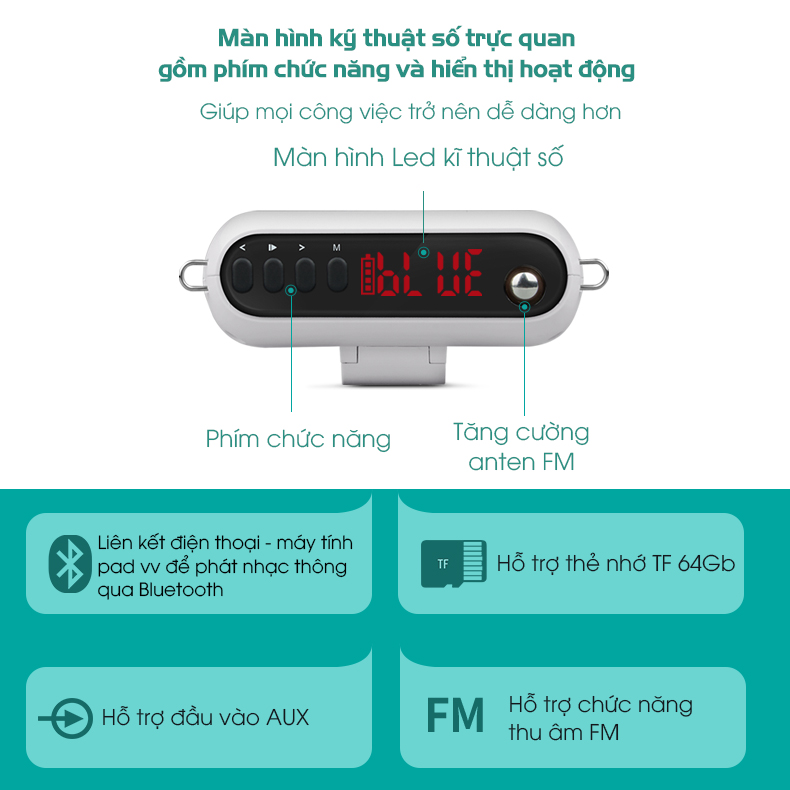 - Hỗ trợ chơi nhạc qua thẻ nhớ TF card, dung lượng hỗ trợ tối đa lên tới 64GB.