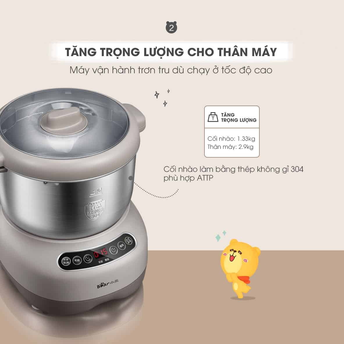 Máy nhồi trộn bột Bear 7L nhào bột, ủ bột tự động, âu trộn thép không gỉ – Hàng chính hãng bảo hành 18 tháng 6 Lý do nên mua MÁY NHỒI TRỘN BỘT BEAR