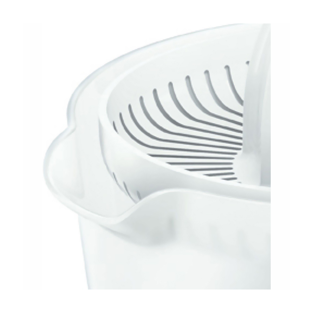 Thiết kế đẹp mắt Máy Vắt Cam Tiross TS1392 có thiết kế kết hợp hai màu trắng xanh lá trang nhã, đặc biệt với chóp nón liên tục xoay trái và phải để tách nước trái