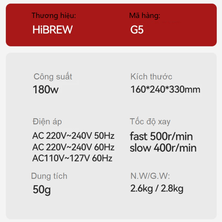 - MÁY XAY CÀ PHÊ HIBREW G5 - SINGLE DOSE sẽ là 1 lựa chọn hoàn hảo cho những ai đam mê cà phê thứ thiệt. Với việc sở hữu hàng loạt các đặc điểm nổi trội hiệu quả Chức năng điều chỉnh độ mịn cà phê