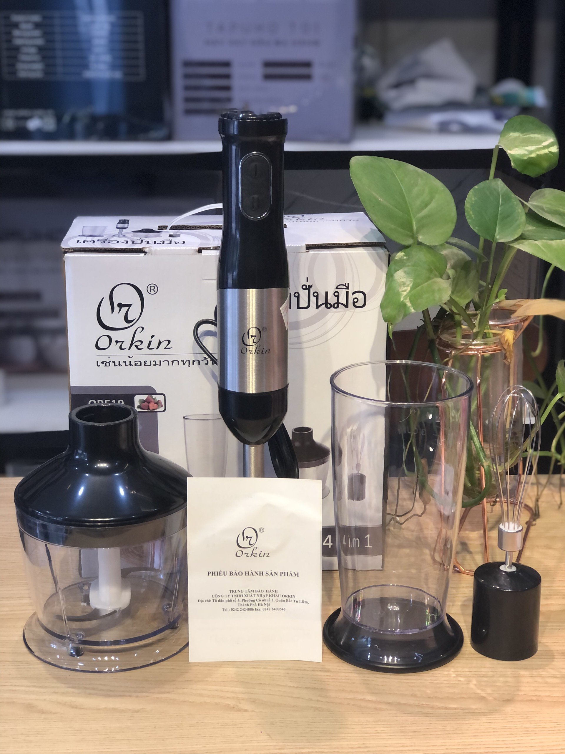Mua tại TiktokMáy xay cầm tay đa năng 4 trong 1 Orkin Thái Lan OR519 bảo hành 12 tháng Loại: Máy xay cầm tay đa năng Loại điều khiển: Nút bấm Model: OR519 Thương hiệu: Orkin Thái Lan Công nghệ sản xuất Thái Lan Công suất: 800W Điện áp: 220V - 50Hz Kích thước đóng hộp: 35 x 30 x 20 cm Trọng lượng: 2.2 kg Dụng tích: 500ml Chất liệu: Nhựa không chứa BPA, lưỡi dao Thép không gỉ Chức năng: Máy xay sinh tố, máy xay thực phẩm, máy đánh trứng, Xay Thịt, Xay Ngũ Cốc ... kèm theo cốc đựng Tốc độ vòng quay: 15000 RPM Sản xuất tại Trung Quốc Bảo hành 12 tháng chính hãng bởi Tập Đoàn Orkin Thái Lan - Việt Nam Đặc điểm nổi bật