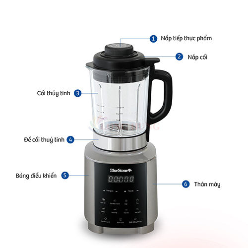 Máy xay nấu đa năng Bluestone BLB-6038 Công suất gia nhiệt: 800W Công suất xay: 1000W Cối thủy tinh Borosilicate cao cấp dung tích lớn : 1.75L Thân máy làm từ nhựa PP 7 chương