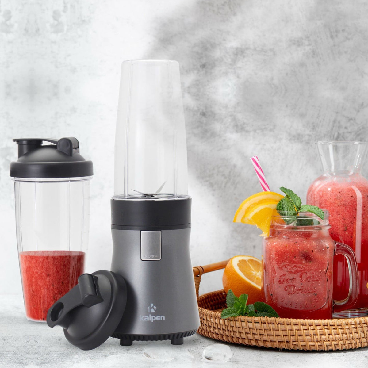 Máy xay sinh tố Kalpen thiết kế hiện đại, nhỏ gọn đi kèm 2 cốc rời linh hoạt