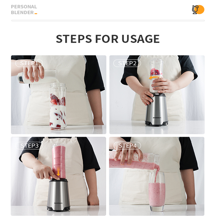 Tính năng sản phẩm : - Xay sinh tố, pha, trộn, xay đá nhỏ Tình năng an toàn : - Không đưa tay vào cối xay vì bộ dao rất bén. Luôn dùng phới