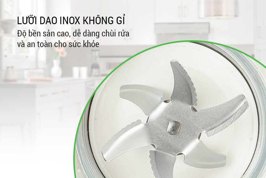 Hệ thống dao xay bằng inox chống ăn mòn, tăng hiệu quả xay, cho độ bền sản phẩm lâu dài đồng thời dễ dàng chùi rửa và an toàn cho sức khỏe người sử dụng.