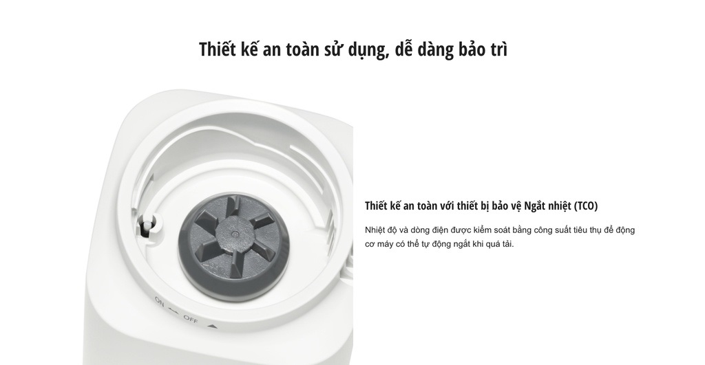 Tính năng sản phẩm : - Xay sinh tố, pha, trộn, xay đá nhỏ Tình năng an toàn : - Không đưa tay vào cối xay vì bộ dao rất bén. Luôn dùng phới
