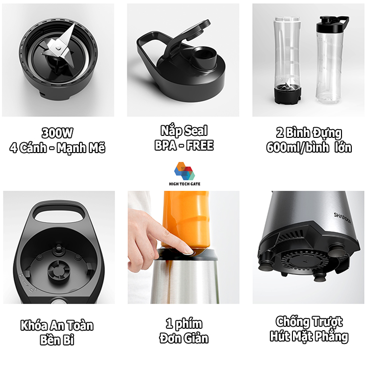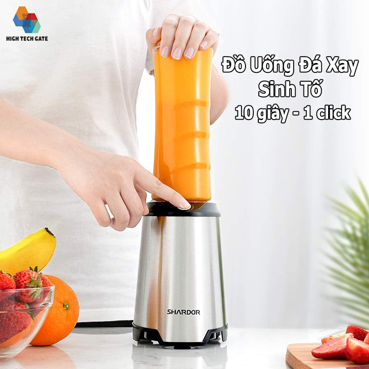 Giới thiệu sản phẩm Nếu sinh tố và các đồ uống đá xay là niềm yêu thích mỗi ngày của bạn, bổ sung vitamin cần thiết cho mỗi thành viên gia đình. Máy xay sinh tố Shardor PB615B mix and go là một lựa chọn không thể bỏ qua, đi kèm với 2 bình du lịch có nắp chống rò rỉ để bạn có thể thuận tiện mang theo đồ uống yêu thích của mình đến lớp hoặc nơi làm việc. 1 click - 10 giây xay nghiền Một cú chạm đơn giản được thực hiện. Máy xay sinh tố Shardor PB615B mix and go cho phép bạn pha chế các loại đồ uống mịn màng, đồng đều theo độ đặc và hương vị mong muốn mọi lúc, bất kể bạn chọn sử dụng loại trái cây hay rau củ nào. ĐẶC ĐIỂM NỔI TRỘI Đế chống trượt, an toàn và bền bỉ. Đế chống trượt giúp máy xay giữ ổn định khi trộn. An toàn để sử dụng. Nó có tác dụng hút dính bề mặt phẳng khi đặt lên. Lưỡi xay inox chống rỉ sét 4 cánh Công suất mạnh mẽ 300W với tốc độ 24000 vòng/phút, và hệ thống xay nghiền lưỡi 4 cánh được tích hợp trong Máy xay sinh tố Shardor PB615B có thể nhanh chóng nghiền nát bất cứ trái cây và đá nào bạn cho vào máy xay sinh tố. Tích hợp 2 bình đựng du lịch dung tích lớn 600ml Máy xay sinh tố Shardor PB615B với 2 bình đựng Tritan - không chứa BPA và 2 Nắp Du lịch miễn phí, tuyệt vời cho chuyến du lịch, công tác, thể thao ngoài trời, phòng tập gym hay văn phòng. Nắp đậy bình kín kẽ, chống rò rỉ khi mang đi Chất liệu không chứa BPA, an toàn, bền và dày đặc.  Giữ nguyên mùi vị và hương thơm ban đầu của đồ uống khi xay xong, để đảm bảo sức khỏe cho người sử dụng. HƯỚNG DẪN SỬ DỤNG Sách hướng dẫn được HTG biên soạn bao gồm TIẾNG ANH & TIẾNG VIỆT được đính kèm bên trong hộp máy, quý khách hàng vui lòng tham khảo kĩ trước khi sử dụng LƯU Ý KHI SỬ DỤNG - Không vệ sinh đế máy chủ với nước, không được làm ướt - Vệ sinh tháo rời từng bộ phận nên lưu ý lưỡi xay để tránh gây tổn thương