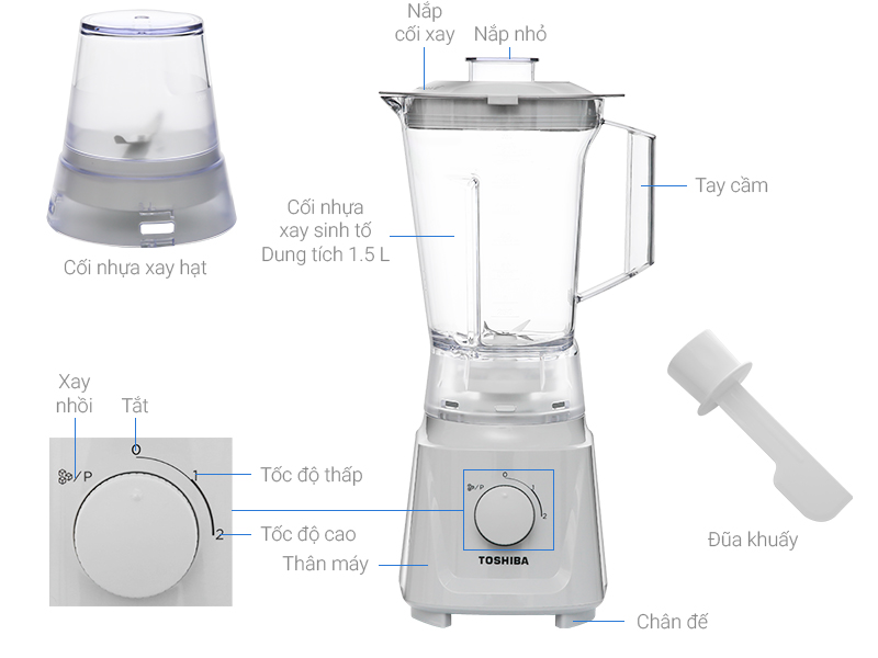 Tính năng sản phẩm : - Xay sinh tố, pha, trộn, xay đá nhỏ Tình năng an toàn : - Không đưa tay vào cối xay vì bộ dao rất bén. Luôn dùng phới